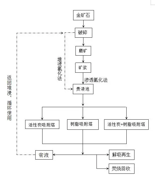 - 氰化浸出工艺:在浸出液澄清后增设树脂吸附柱,采用 “吸附 - 解析 - 电解” 流程,直接回收金单质,尾液可循环回浸出环节;
