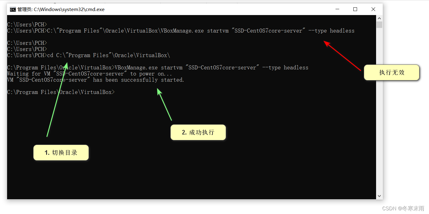 1. 要切换到虚拟机的安装目录下,否则执行时会无反应