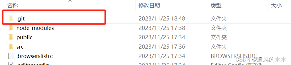 - 输入git init,这个目录变成git可以管理的仓库,会出现一个.git文件夹,如果没出现的话需要选择“显示隐藏文件”, 如下图所示: