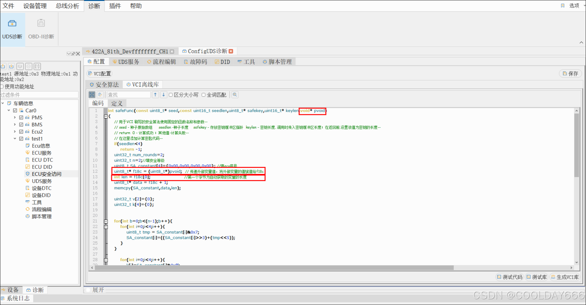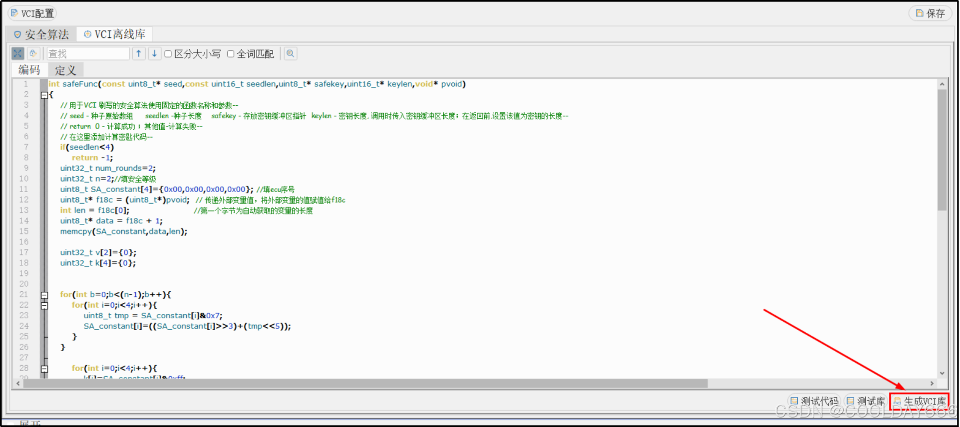 测试代码,可以验证算法正确性。没有问题就可以生成VCI离线库,用于脱机刷写调用。