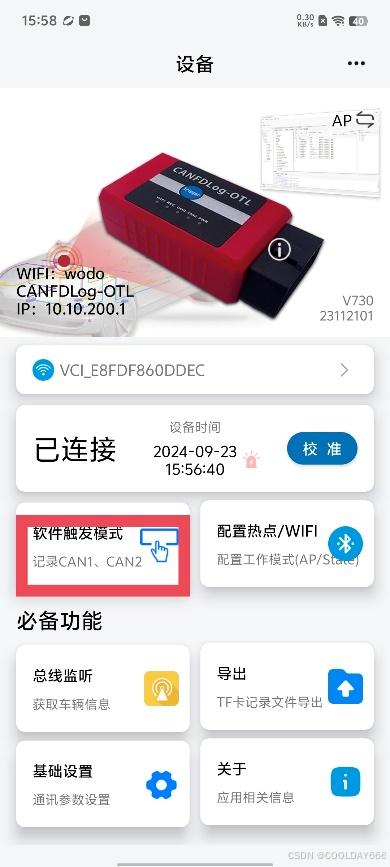 记录模式总共有连续记录、硬件触发、软件触发、错误触发四种模式选择,并且在选择完记录模式后还可以设置保留触发点前报文条数、存储时间、录制通道、保存类型