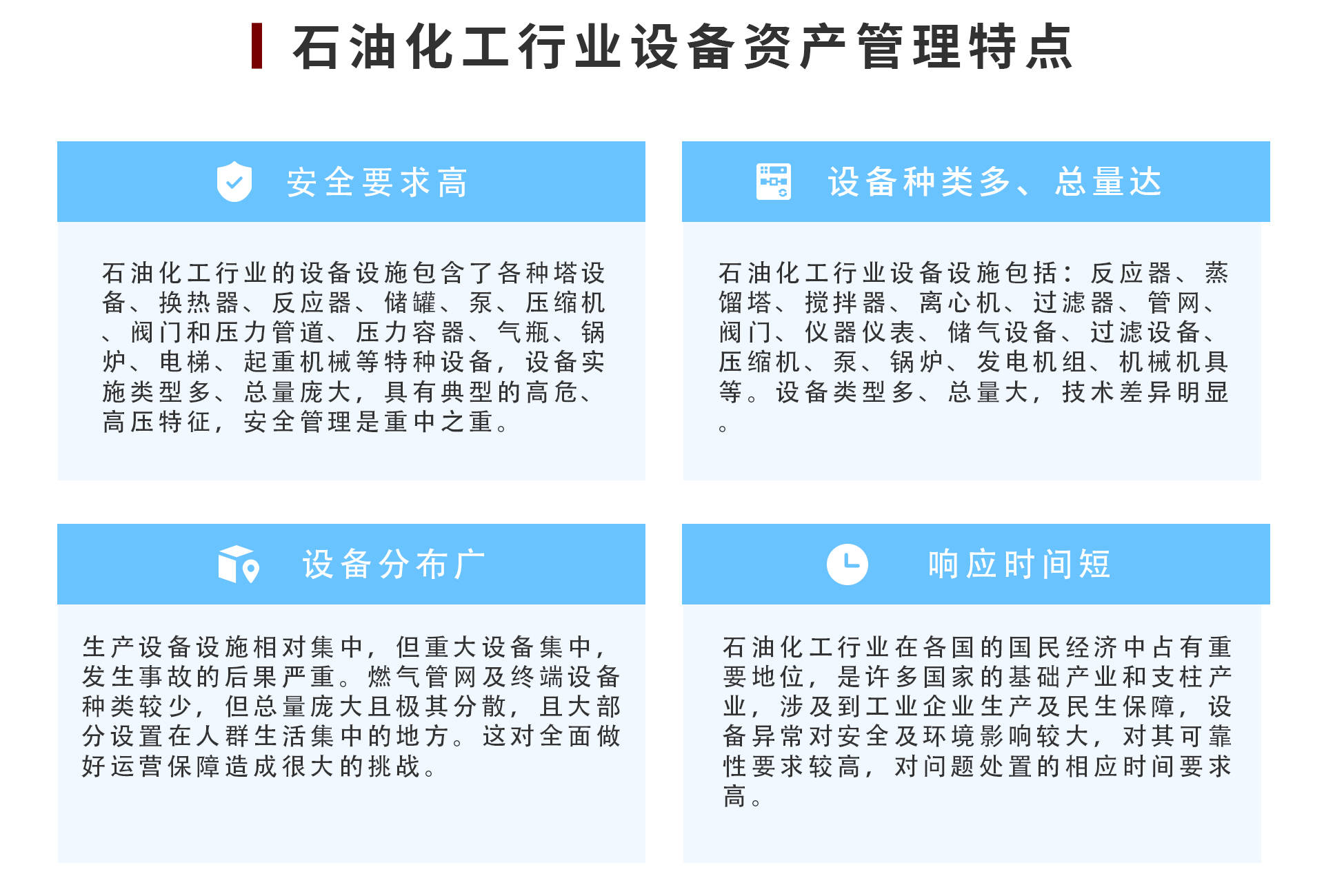 石油化工行业设备管理正经历从传统模式向数智化的深度变革。在 "双碳" 目标与能源安全双重驱动下,行业设备 "三高三复杂" 特性与管理痛点交织,而数智化技术为破解安全、效率与成本难题提供了全新路径。本文系统剖析行业挑战,解读数智化解决方案核心架构与应用场景,通过标杆案例呈现管理升级价值,并展望未来技术趋势。