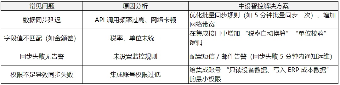 - 增量核对:连续 3 天同步真实业务数据(如每日维修工单、备件采购单),核对同步后的数据是否 100% 一致,避免 “偶发同步失败”。