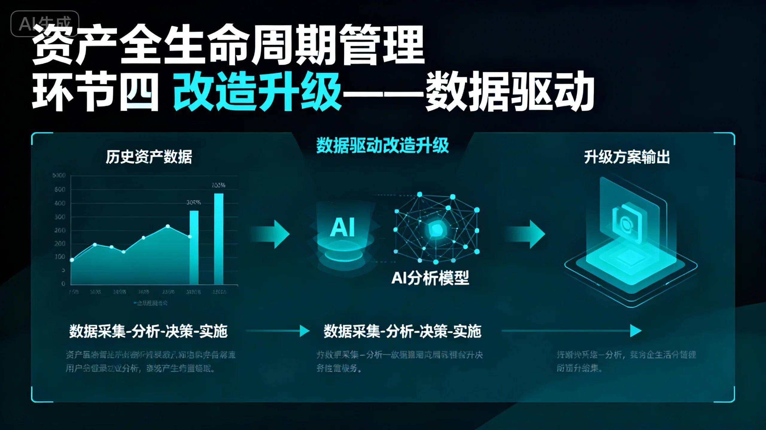 - 数据联动:采购数据支撑维护计划,维护记录指导改造决策,报废数据优化下次采购,形成“数据闭环”;