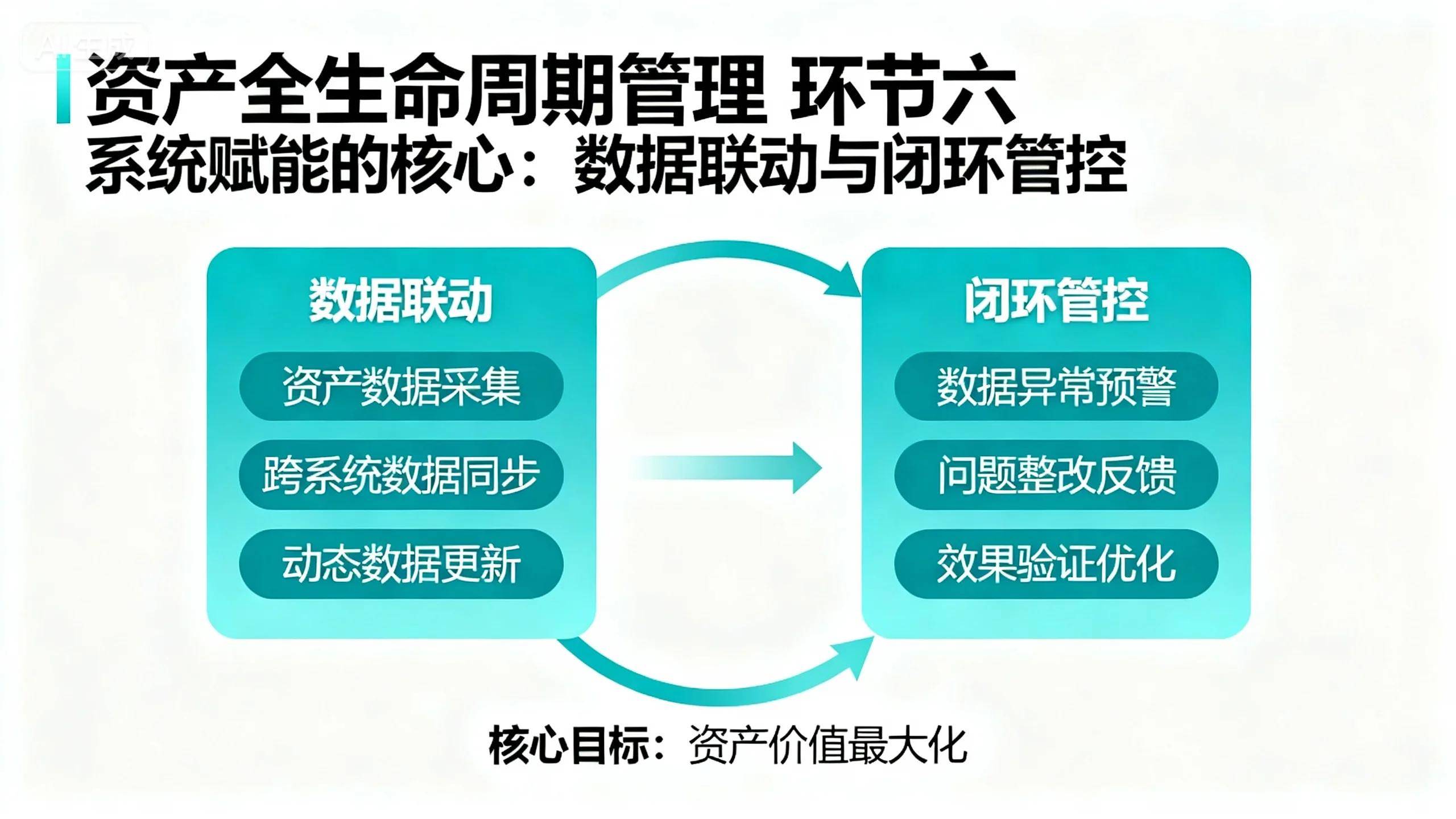 设备管理系统实现资产全生命周期管理的关键,在于“数据打通”与“流程闭环”: