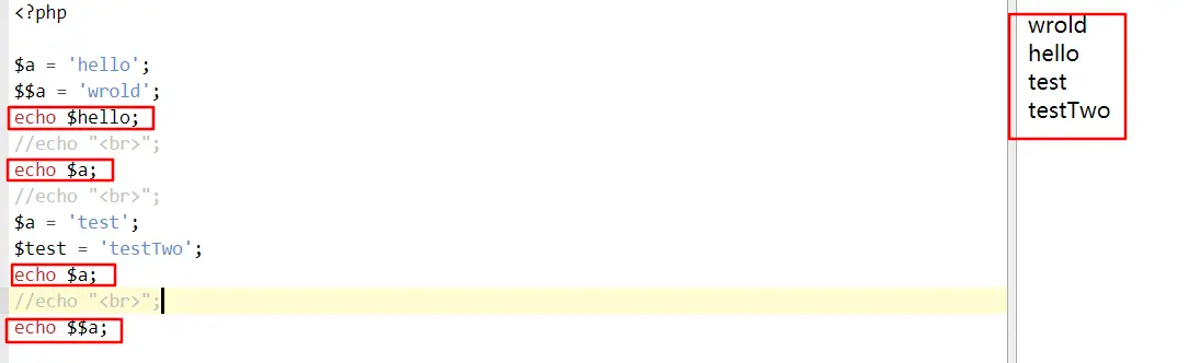 我们可以怎么理解呢,就是可以理解成$$a就相当于$a的参数这个内容当作了变量名称。我们看一个测试的代码: