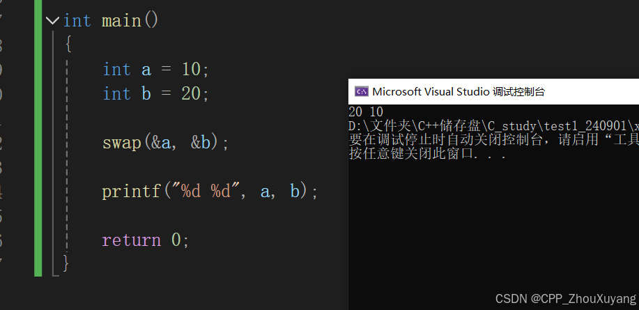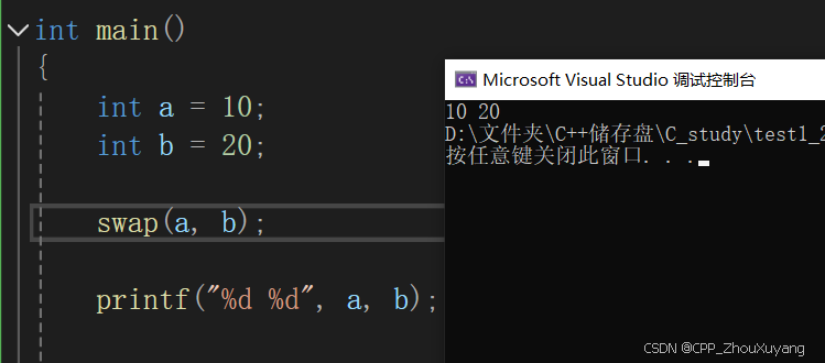 基础代码我们写出来了,现在要写函数部分,我们分别展示传值和传址的使用区别和结果差异
