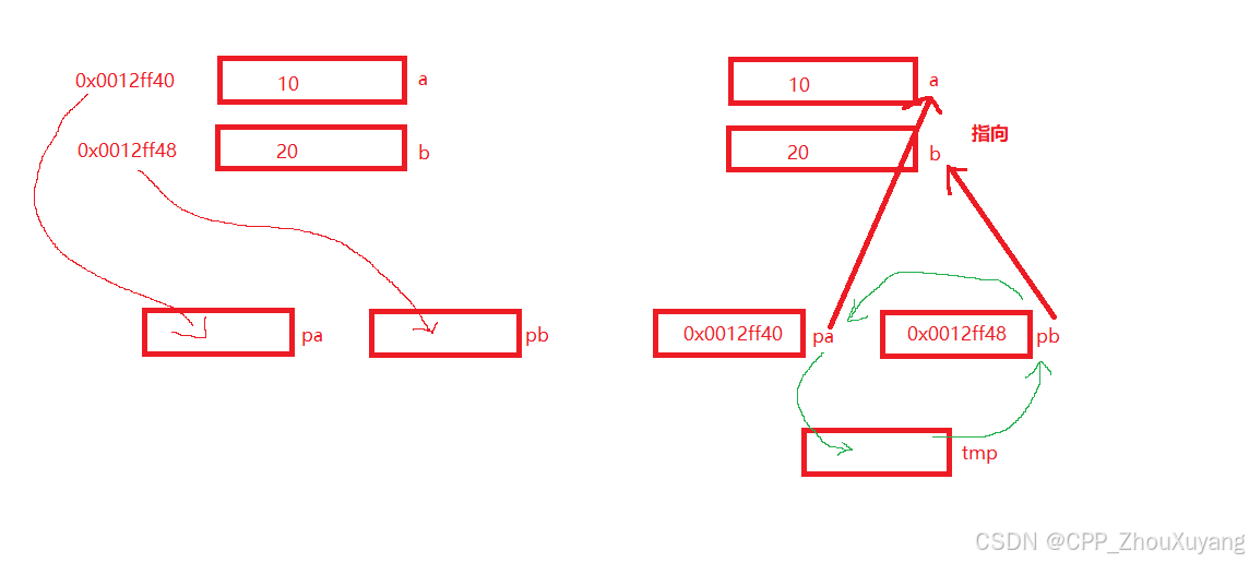 *pb = tmp;