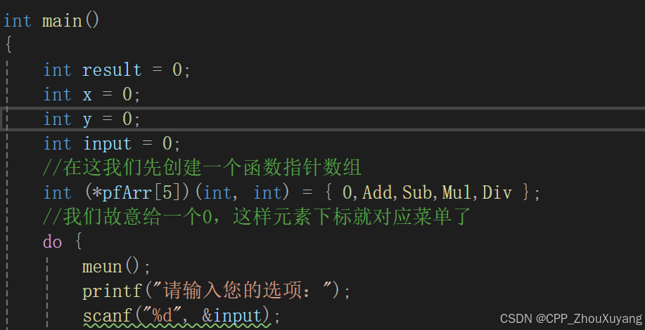 那么我们刚是用函数名来调用,现在我们能不能将这些函数的地址都放到一个数组内,然后用函数的地址去调用函数