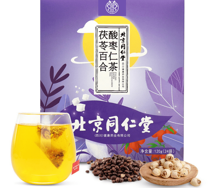 平常失眠、睡眠质量差、烦心失眠的症状可以在睡前喝一点茯苓百合酸枣仁茶,这个茶独立包装的也比较方便,还有科学的用料配比,可以放心饮用。睡前泡一小包,帮助你更快入睡,改善睡眠不好的症状。