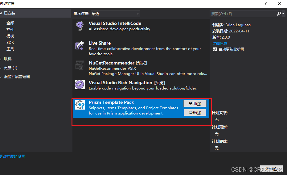vstemplate 文件引用向导类 Prism.visualStudio.wizards.selectcontainerwizard。在 Prism.visualstudio.wizards.version =1.0.0.0 的程序集中不存在。