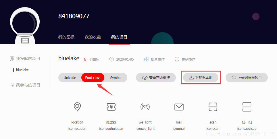 icon 图标使用指南: ,在这里我是参考的 font-class 引用。