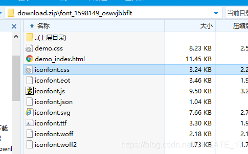其中,iconfont.css 文件为入口文件,里面是各图标的 class 样式。
