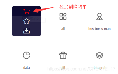 新建好项目之后,选择 菜单栏 里面的 图标库,将喜欢的图标添加到购物车。如下图所示: