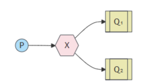 最基本的点对点模式。生产者(P)将消息发送到队列(Queue),消费者(C)从队列中取出消息。队列充当缓存区,确保消息在传递过程中不会丢失