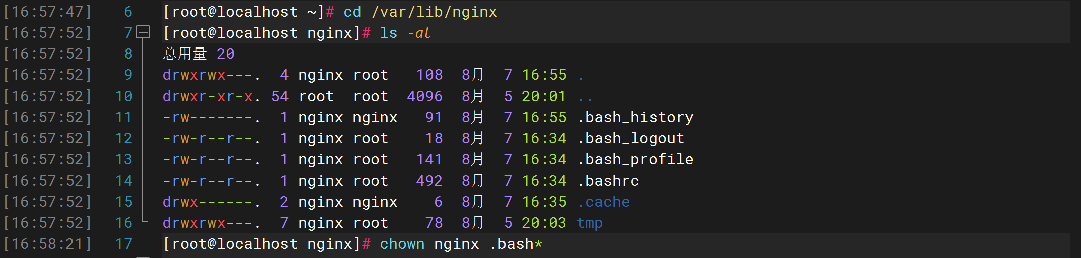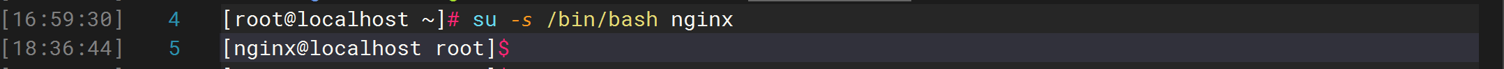 命令 su -s /bin/bash nginx ——从/cd/etc/skel模板中复制模板——cp .bash* /var/lib/nginx——修改chown nginx .bash*——输入su -l -s /bin/bash nginx 完成2