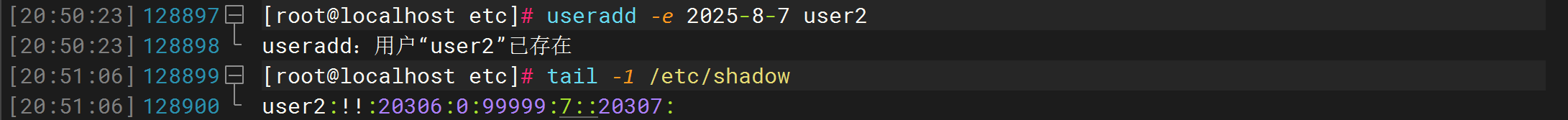更改用户密码过期信息(只能更改已经创建的用户信息)