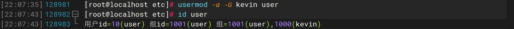 kevin:x:1000: #组名:占位符:组ID:非基本组的组成员