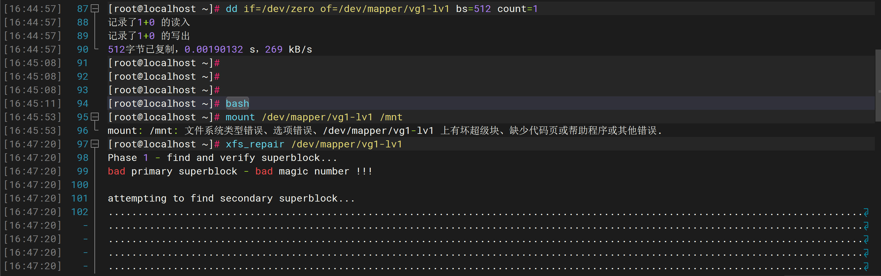 xfs_repair: 尝试修复受损的 xfs 文件系统
