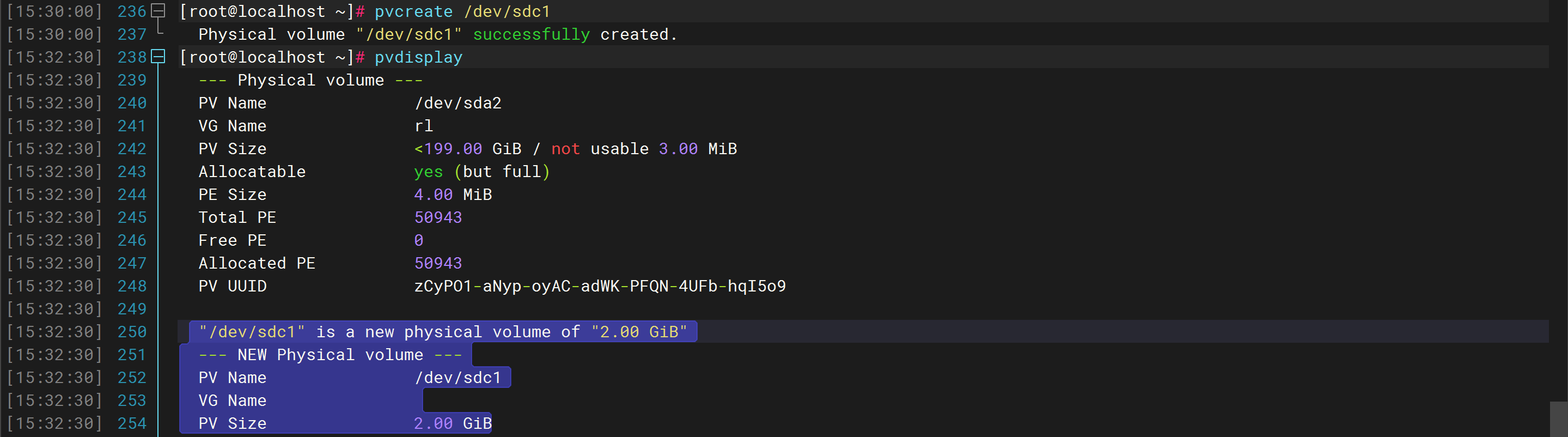 创建物理卷pvcreate /dev/sdb1 需要先创建好分区后再进行操作 pvdisplay查看