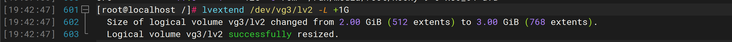 扩建 lvextend /dev/vg3/lv2 -L +1G