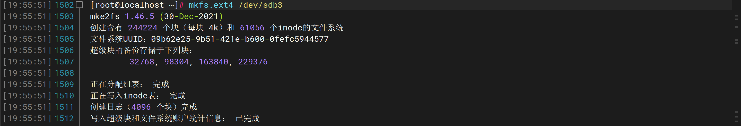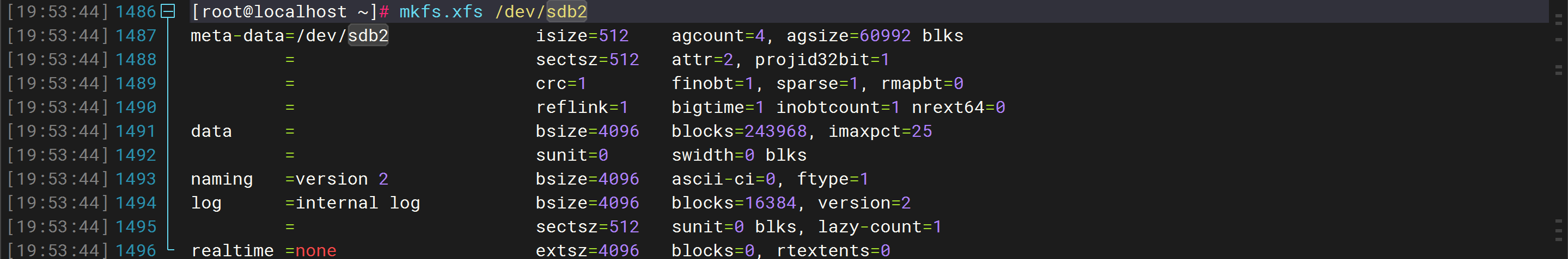 或者mkfs.xfs /dev/sdb1 mkfs.ext4 /dev/sdb3