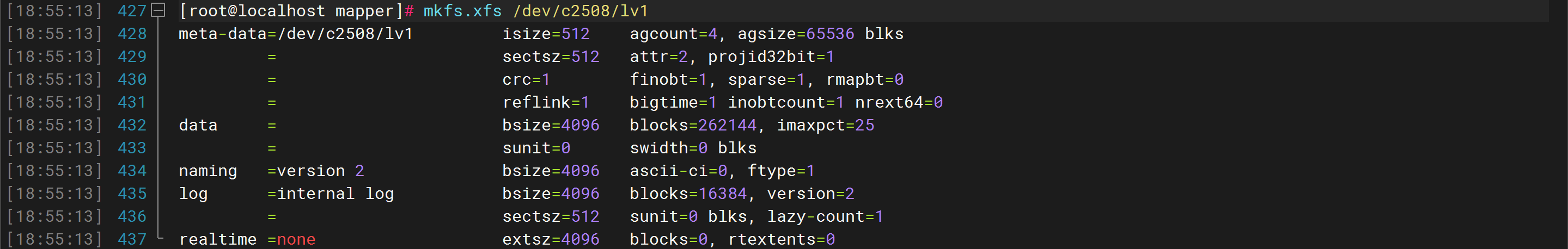 创建lvextend -L 识别容量xfs_growfs /dev/c2508/lv1