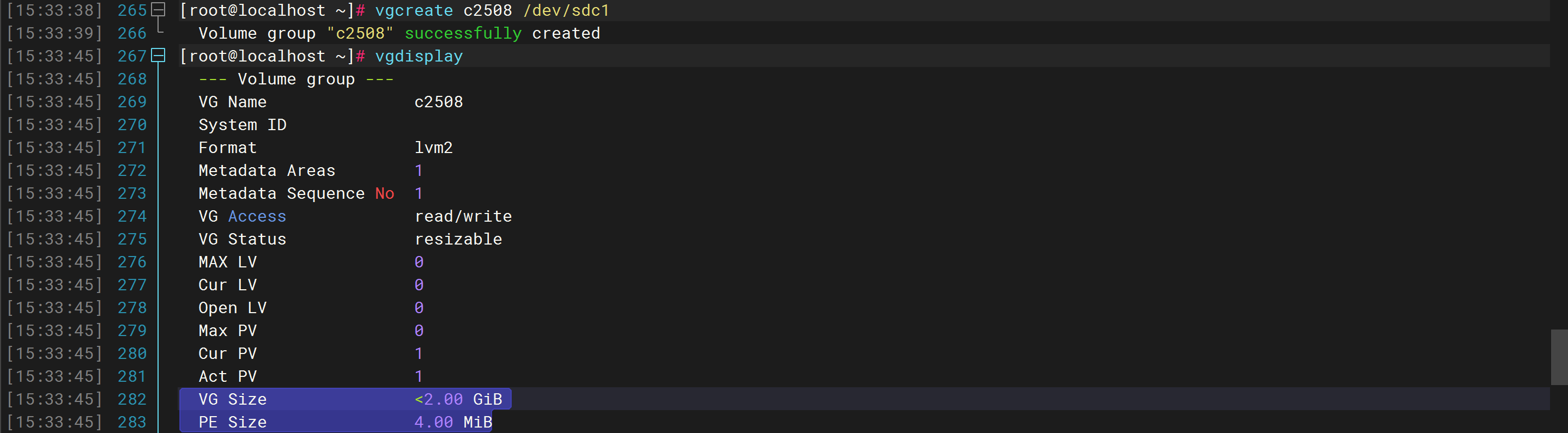 创建卷组vgcreate /dev/sdb1 vgdisplay查看