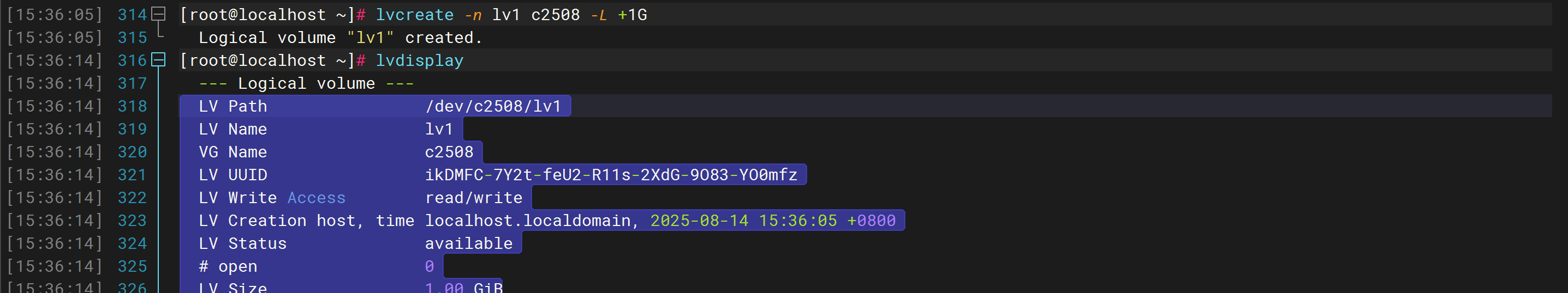 逻辑卷建立在 VG 之上,相当于原来分区的概念,不过大小可以动态改变。从卷组中分割出的一块空间,用于建立文件 系统。
