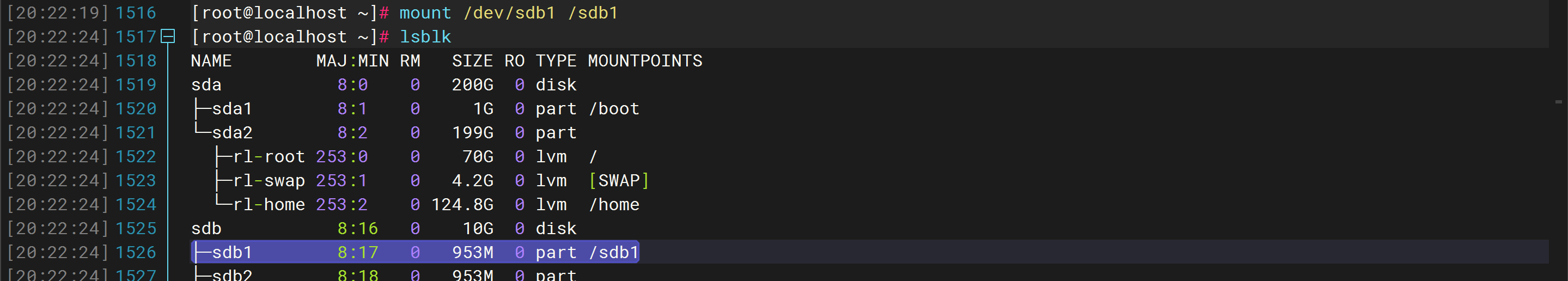 mount挂载 sdb1格式化后删除重建仍存留数据故不用格式化也能被识别。