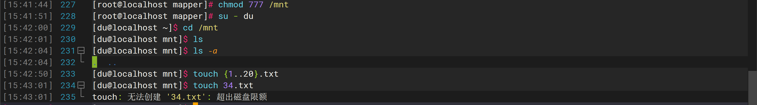 1.2、限制类型 :1.软限制(可灵活调配、可突破的)2.硬限制(不可突破限制) 限制内容为容量大小:inode节点(文件数量)