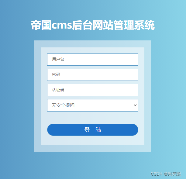 帝国cms美化后台登录界面只需要修改admin文件夹的index.php文件即可,如图,做了一个蓝色的渐变背景的登录框。