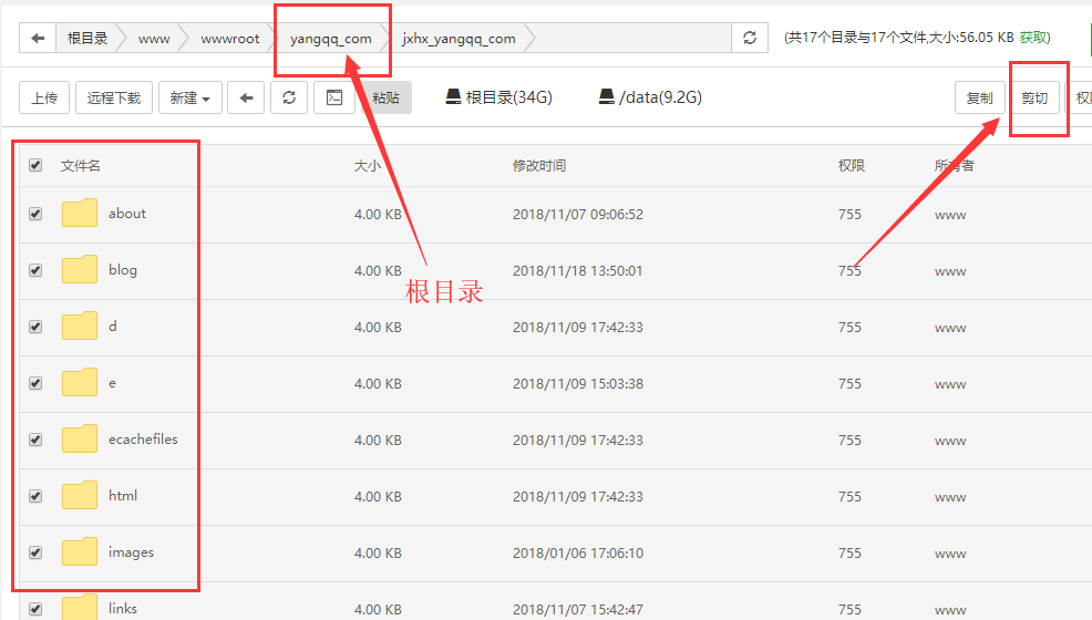 2、上传文件 找到网站的根目录,然后上传压缩包,zip格式的
