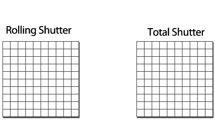 想要理解这个问题的产生原因,首先要知道两个名词:“全局快门(Global shutter)”和“卷帘快门(Rolling shutter)”。