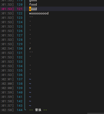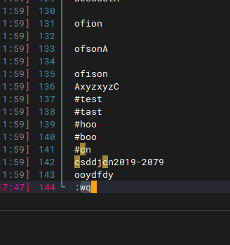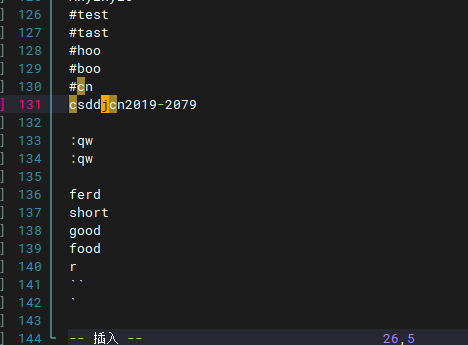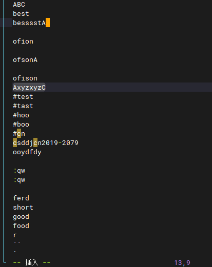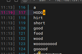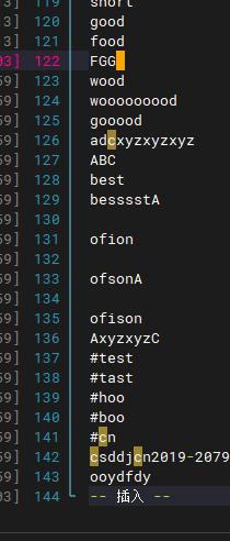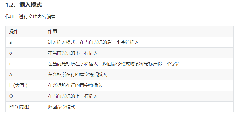 i 在当前光标所在字符插入,返回命令模式时会将光标迁移一个字符