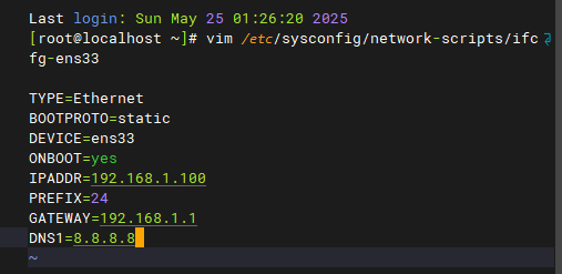 将网卡ens224配置为静态IP192.168.1.100/24,网关192.168.1.1,DNS8.8.8.8。