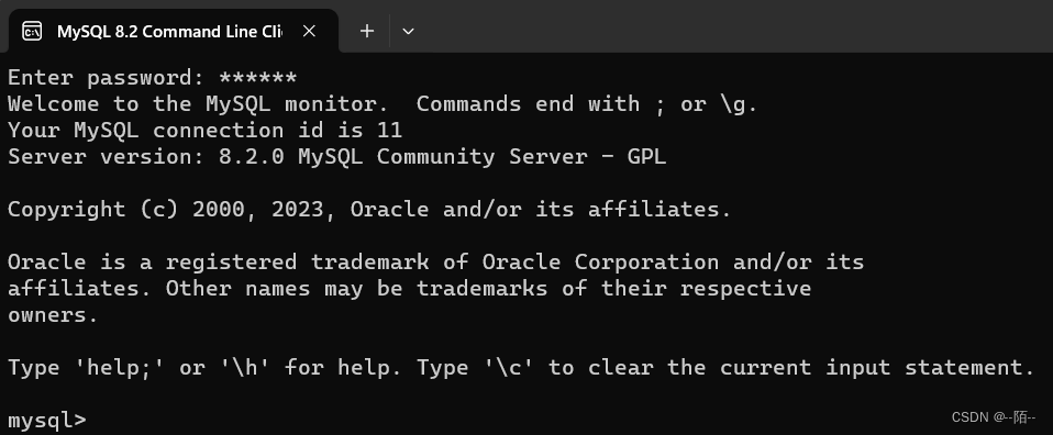 到此处再次打开MySQL 8.2 Command Line Client 你就可以打开了