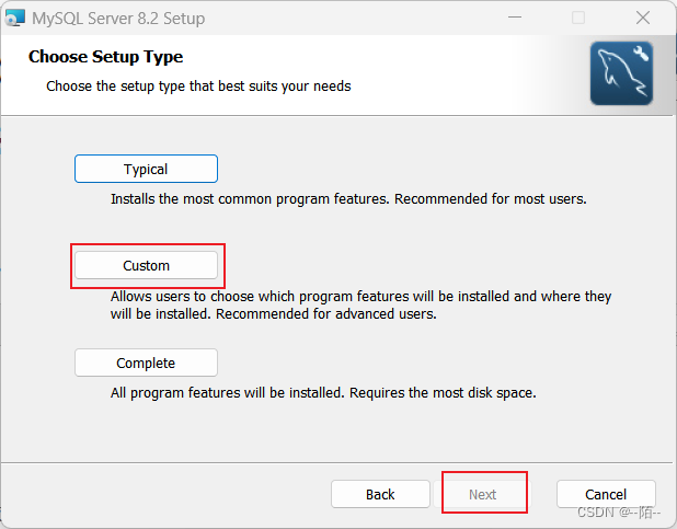 但是为了避免C盘不够用的情况,我选了第二种Custom自定义安装