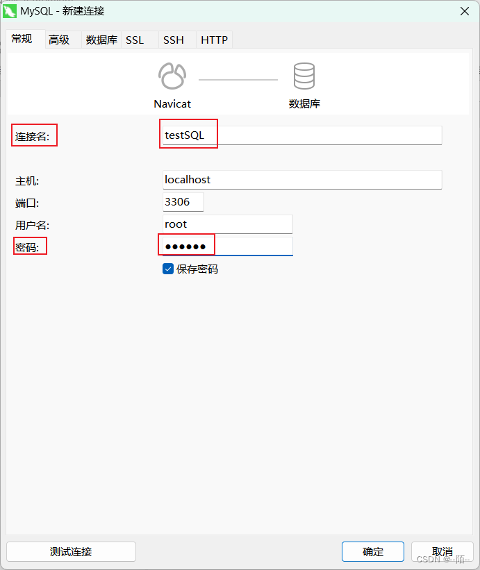 连接名是需要你自己自定义的,随便起个名就行,密码是你安装时设置的那个密码