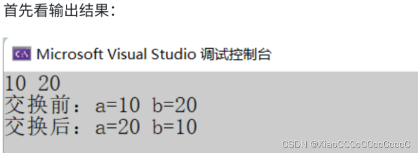 printf("交换后:a=%d b=%d\n", a, b);
