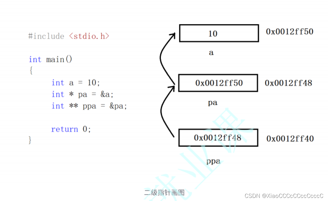 指针变量也是变量,是变量就有地址,存放指针变量地址的指针变量就是二级指针。