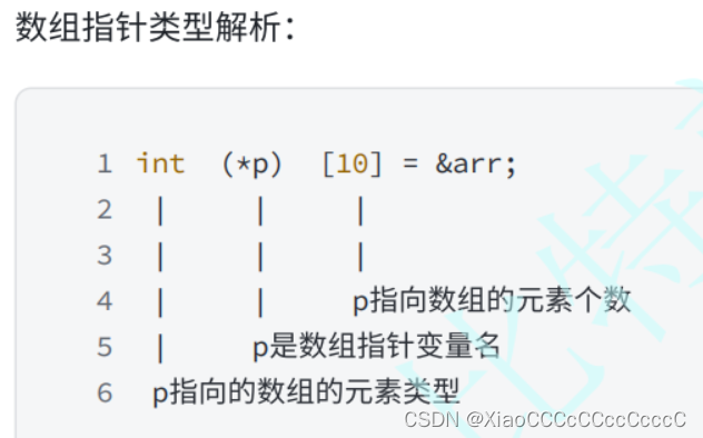 p2先和*结合,说明p2是一个指针变量,然后指向的是一个大小为10个整型的数组。所以p2是一个指针,指向一个数组,叫数组指针。