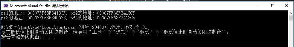 printf("pf1的地址: %p, pf2的地址: %p\n", pf1, pf2);