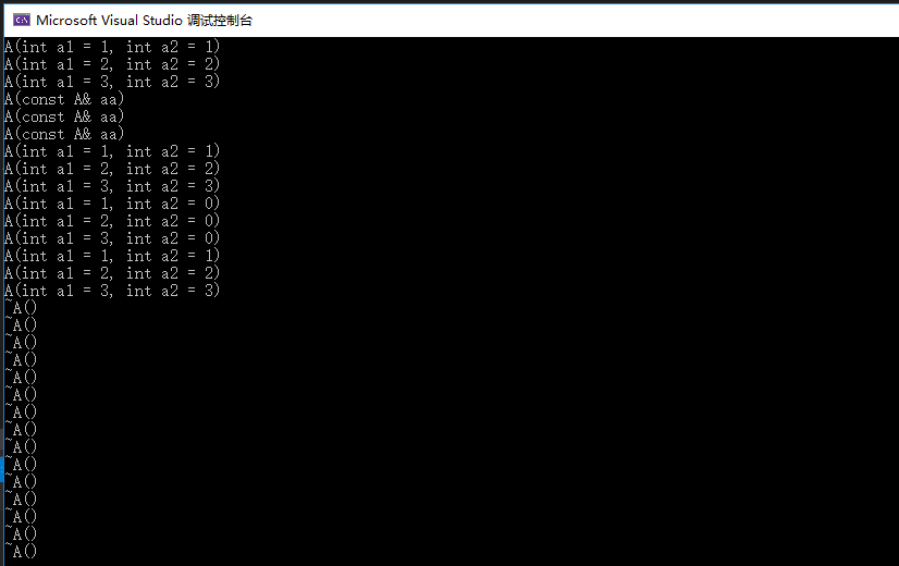 创建aa1,aa2,aa3时调用3次构造函数,创建p4时调用3次拷贝构造,创建p5,p6,p7时各自调用3次构造函数,最后delete释放p4,p5,p6,p7进行12次析构,程序结束时自动释放aa1,aa2,aa3进行3次析构。其中对象拷贝时编译器对其的优化参考C++类和对象(4)中的对象拷贝时的编译器优化。