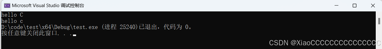 这⾥演⽰VS2022中创建项⽬和编写C代码的过程,并运⾏出结果。在VS2022上运⾏代码的快捷键: Ctrl+f5