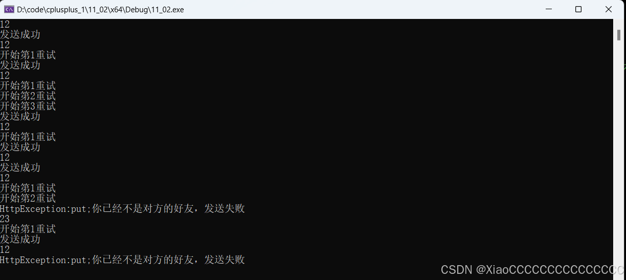 _SendMsg(s); //抛异常直接跳到catch的地方,发送成功则跳出循环,不用重试
