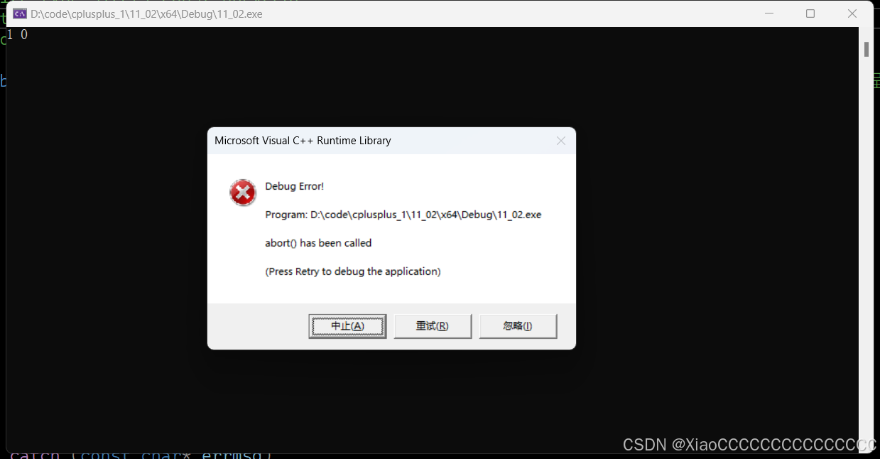 cout << noexcept(Divide(1, 2)) << endl; //Divide函数可能会抛出异常,所以返回0,表示该函数不会抛异常是错误的
