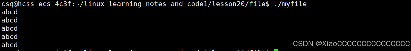上述fwrite接口的意思是向 fp 中写入 1个 大小为 strlen(msg) 的 msg 。 循环写五次,得到如下结果: