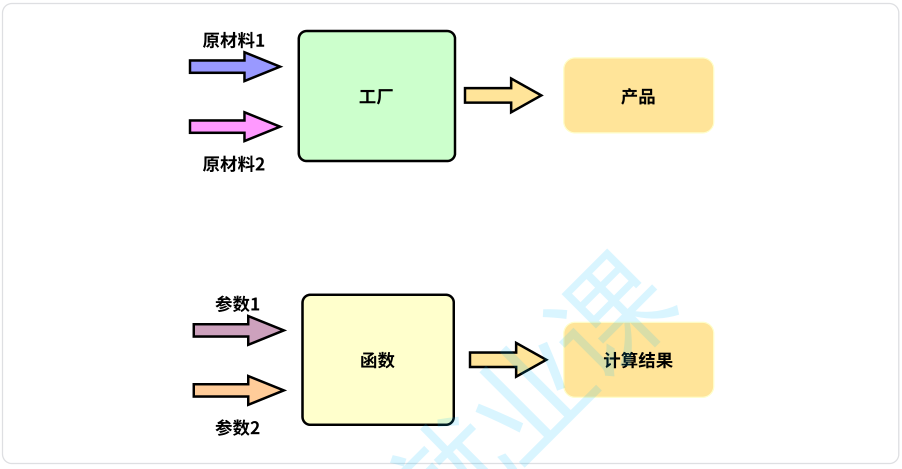可以把函数想象成⼩型的⼀个加⼯⼚,⼯⼚得输⼊原材料,经过⼯⼚加⼯才能⽣产出产品,那函数也是⼀样的,函数⼀般会输⼊⼀些值(可以是0个,也可以是多个),经过函数内的计算,得出结果。