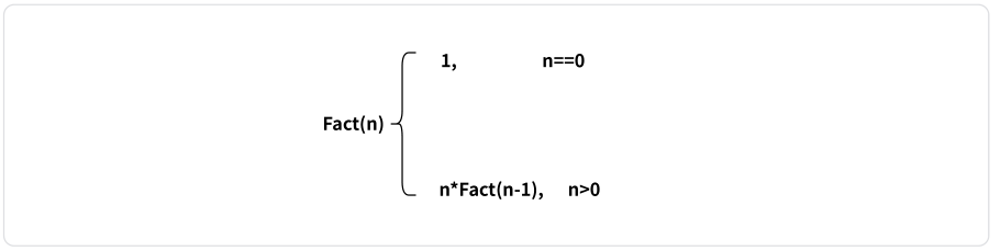 n 的阶乘公式为 n! = n * (n - 1)!,当 n == 0 时,n 的阶乘为 1,那么 n 的阶乘的递归公式如下: